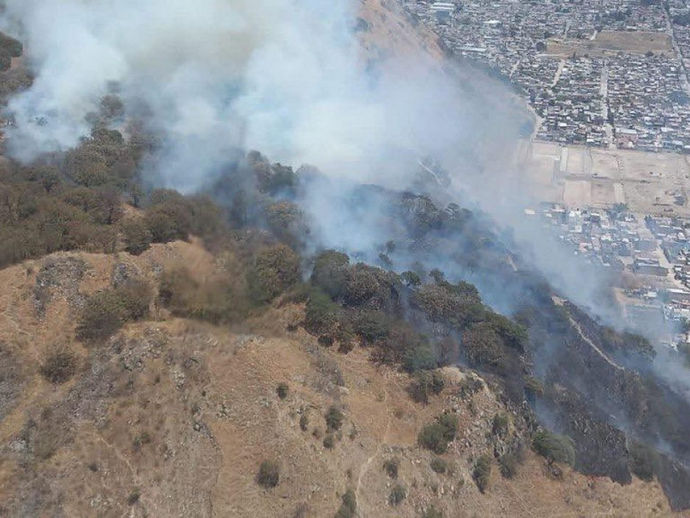 Fuerte incendio forestal consume el cerro del Tepozteco en Morelos.
