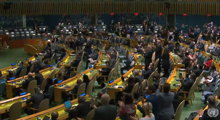 Esta acción contó con un apoyo de 141 estados miembros mientras que hubo 35 abstenciones y 5 votos en contra los cuales fueron de Rusia, Bielorrusia, Siria, Corea del Norte y Eritrea.