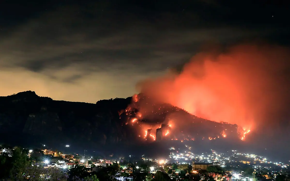 Fuerte incendio forestal consume el cerro del Tepozteco en Morelos.